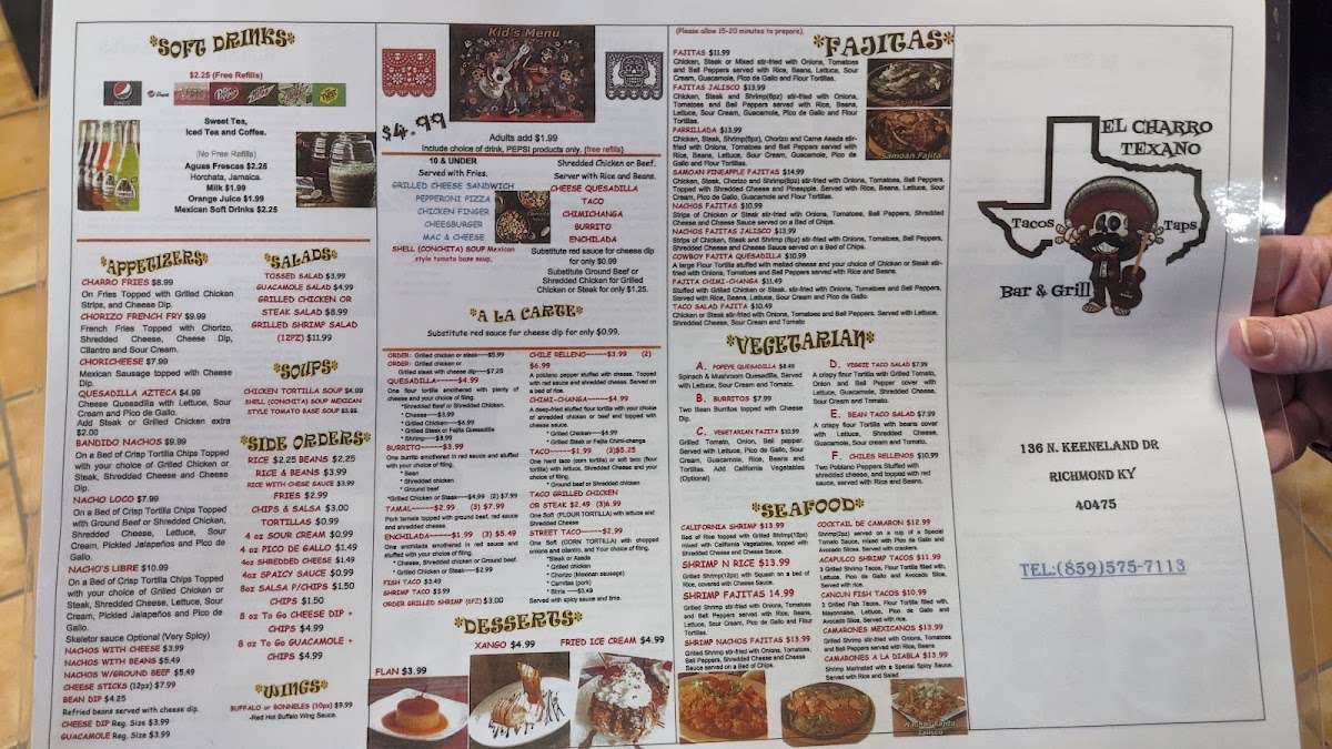 Welcome to El CHARRO TEXANO TACOS AND TAPS, a delightful culinary gem located at 136 N Keeneland Dr, Richmond, KY. This vibrant eatery captures the essence of Tex-Mex cuisine, offering a medley of flavors that speak to the heart of food lovers. The menu features an extensive array of tacos, each crafted with fresh ingredients and a touch of spice that ignites the palate without overwhelming it.